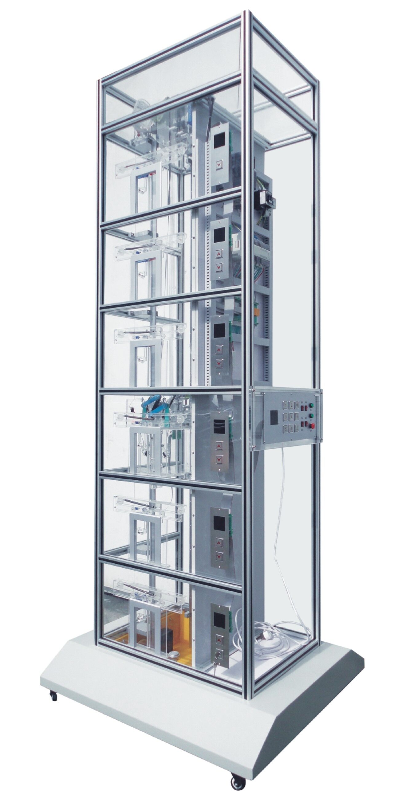 是根據(jù)最常見(jiàn)的升降式電梯結(jié)構(gòu),采用透明有機(jī)材料制成,其結(jié)構(gòu)與實(shí)際電梯完全相同,且?guī)缀蹙邆淞藢?shí)際電梯的所有功能。為了便于教學(xué),電梯大部分部件均是采用透明有機(jī)材料制成,使得電梯的內(nèi)部結(jié)構(gòu)一目了然;同時(shí),電梯的運(yùn)行過(guò)程,以及每個(gè)動(dòng)作都十分明了,且可以反復(fù)實(shí)際動(dòng)手操作。使學(xué)生能夠很直觀、透徹地了解、掌握電梯的結(jié)構(gòu)及其動(dòng)作原理,達(dá)到事半功倍的效果。解決了以往電梯教學(xué)中單純的理論教學(xué)方式或是參觀實(shí)際電梯時(shí)所帶來(lái)的不安全,無(wú)法全面了解其內(nèi)部結(jié)構(gòu)及運(yùn)行過(guò)程等種種實(shí)際問(wèn)題。