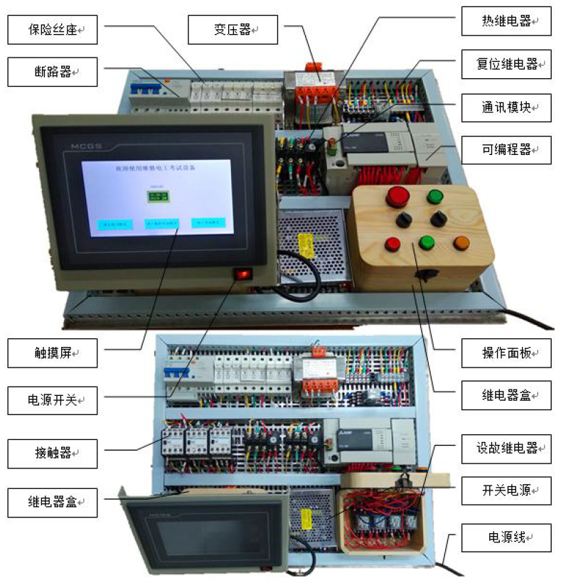 如上述回路,改造后的維修電工故障排查考核實訓(xùn)裝置實物參考圖4。