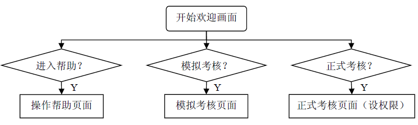 開機(jī)為歡迎界面。可選擇進(jìn)入“幫助”“練習(xí)模式”和“考核模式”,如圖5,選擇后可啟動對應(yīng)的模塊功能,其中“考核模式”的進(jìn)入設(shè)置有賬戶權(quán)限。
