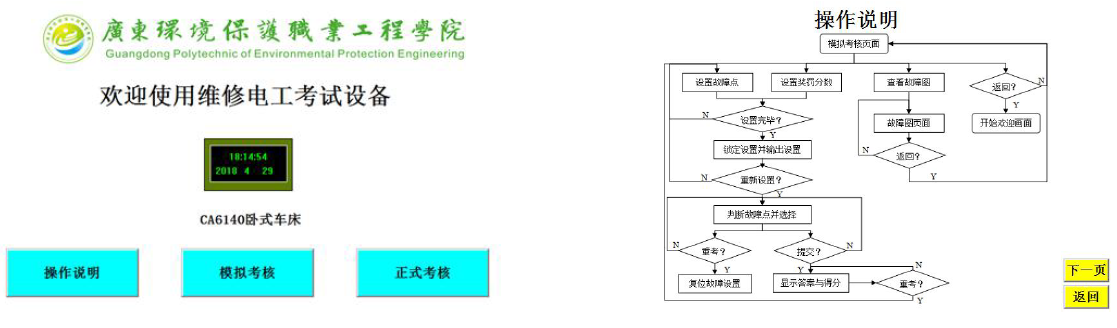 組態(tài)界面可分為歡迎、幫助、練習(xí)模式和考核模式四個界面。具體可參考圖8至圖10。