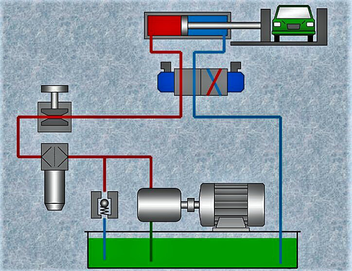 液壓泵把機(jī)械能轉(zhuǎn)換成液體的壓力能,液壓控制閥和液壓輔件控制液壓介質(zhì)的壓力、流量和流動(dòng)方向,將液壓泵輸出的壓力能傳給執(zhí)行元件,執(zhí)行元件將液體壓力能轉(zhuǎn)換為機(jī)械能,以完成要求的動(dòng)作。