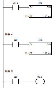 | 4 | = | Q0.0 | 延時(shí)時(shí)間到,輸出 |