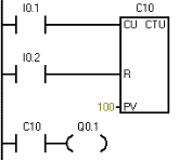 CTU | Cxxx,PV | 加計(jì)數(shù)器對(duì)CU的上升沿進(jìn)行加計(jì)數(shù);當(dāng)計(jì)數(shù)器的當(dāng)前值大于等于設(shè)定值PV時(shí),計(jì)數(shù)器位被置1;當(dāng)計(jì)數(shù)器的復(fù)位輸入R為ON時(shí),計(jì)數(shù)器被復(fù)位,計(jì)數(shù)器當(dāng)前值被清零,位值變?yōu)镺FF |