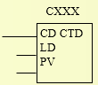 CTD | Cxxx,PV | 減計(jì)數(shù)器對(duì)CD的上升沿進(jìn)行減計(jì)數(shù);當(dāng)當(dāng)前值等于0時(shí),該計(jì)數(shù)器被置位,同時(shí)停止計(jì)數(shù);當(dāng)計(jì)數(shù)裝載端LD為1時(shí),當(dāng)前值恢復(fù)為預(yù)設(shè)值,位值置0 |
