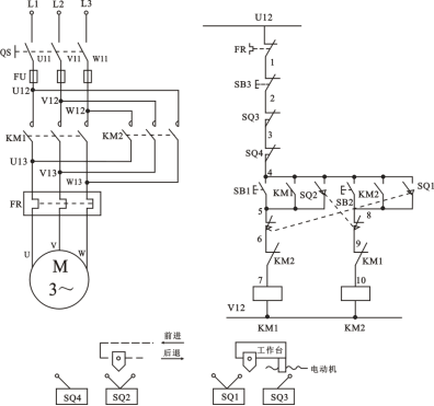 | SQ1、SQ2 | 行程開關(guān) | LX19-111 | 觸動(dòng)復(fù)位 | 2 | |