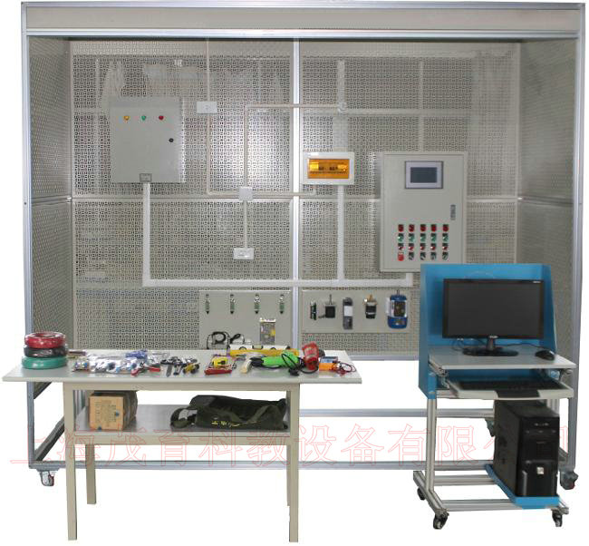 本設(shè)備可進(jìn)行電工安裝。如橋架安裝、PVC管安裝、吊燈、白熾燈座、日光燈、開(kāi)關(guān)、插座、配電箱、控制箱等,裝置還包含有交流異步電動(dòng)機(jī)、直流電動(dòng)機(jī)、步進(jìn)電機(jī)、伺服電機(jī)、溫度控制器、電偶、PLC、變頻器觸摸屏。該系統(tǒng)每個(gè)操作組配套一可移動(dòng)式工具車和元件柜,便于對(duì)元件的保管和安裝施工。從根本上解決了學(xué)校在普通墻面上進(jìn)行的安裝培訓(xùn)的使用不方便、實(shí)訓(xùn)范圍窄的問(wèn)題